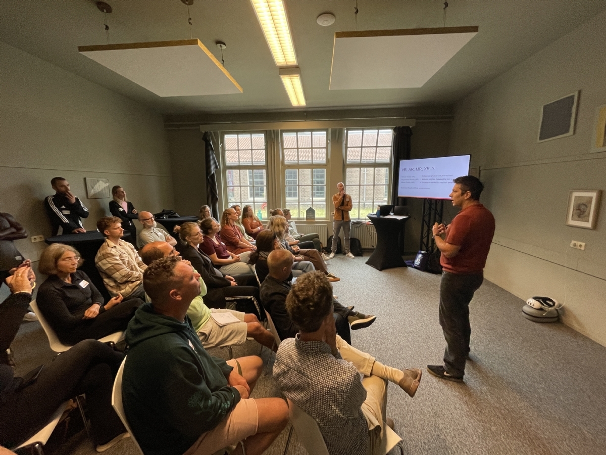 - Bart van Gastel, Programmamanager iXperium Sport en Bewegen, ging dieper in op XR (VR, AR en MR) en gaf praktijkvoorbeelden uit onderzoek en experimenten in de zorgcontext.