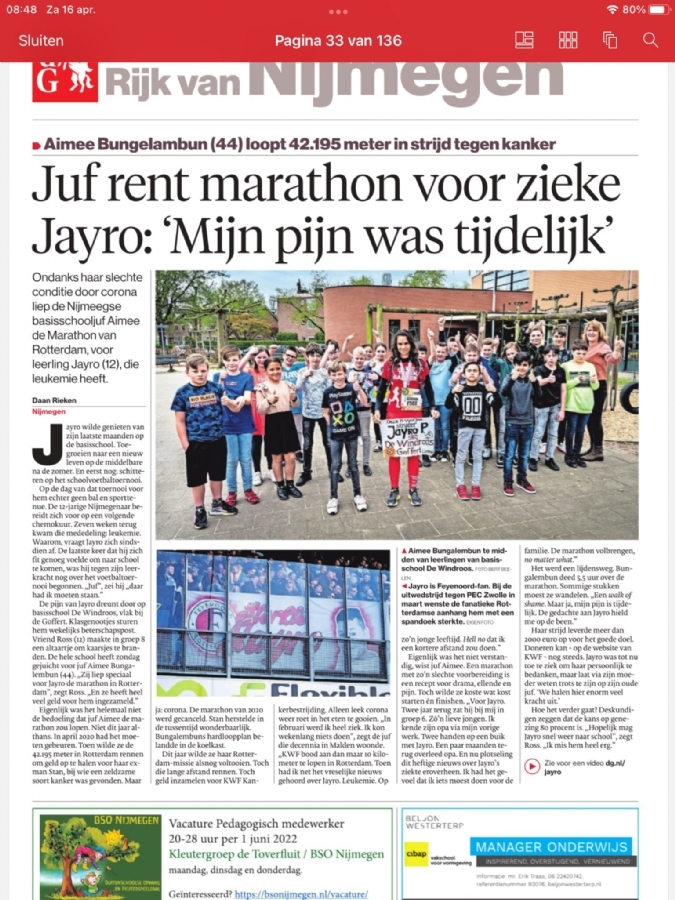 Ik loop marathons voor Kika en de KWF en vertegenwoordig hierbij mijn fantastische beroep leerkracht speciaal basisonderwijs kortom Juf Aimee.
